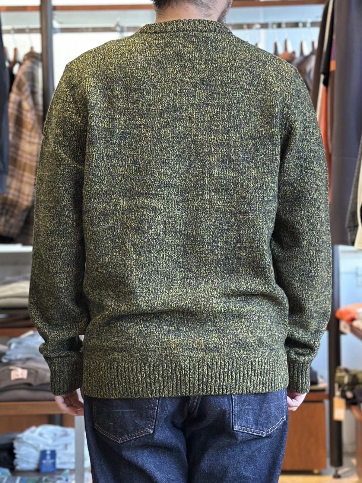 フレッドペリーのインラインで使用している3色の色を組み合わせて編み立てたクルーネックニット。