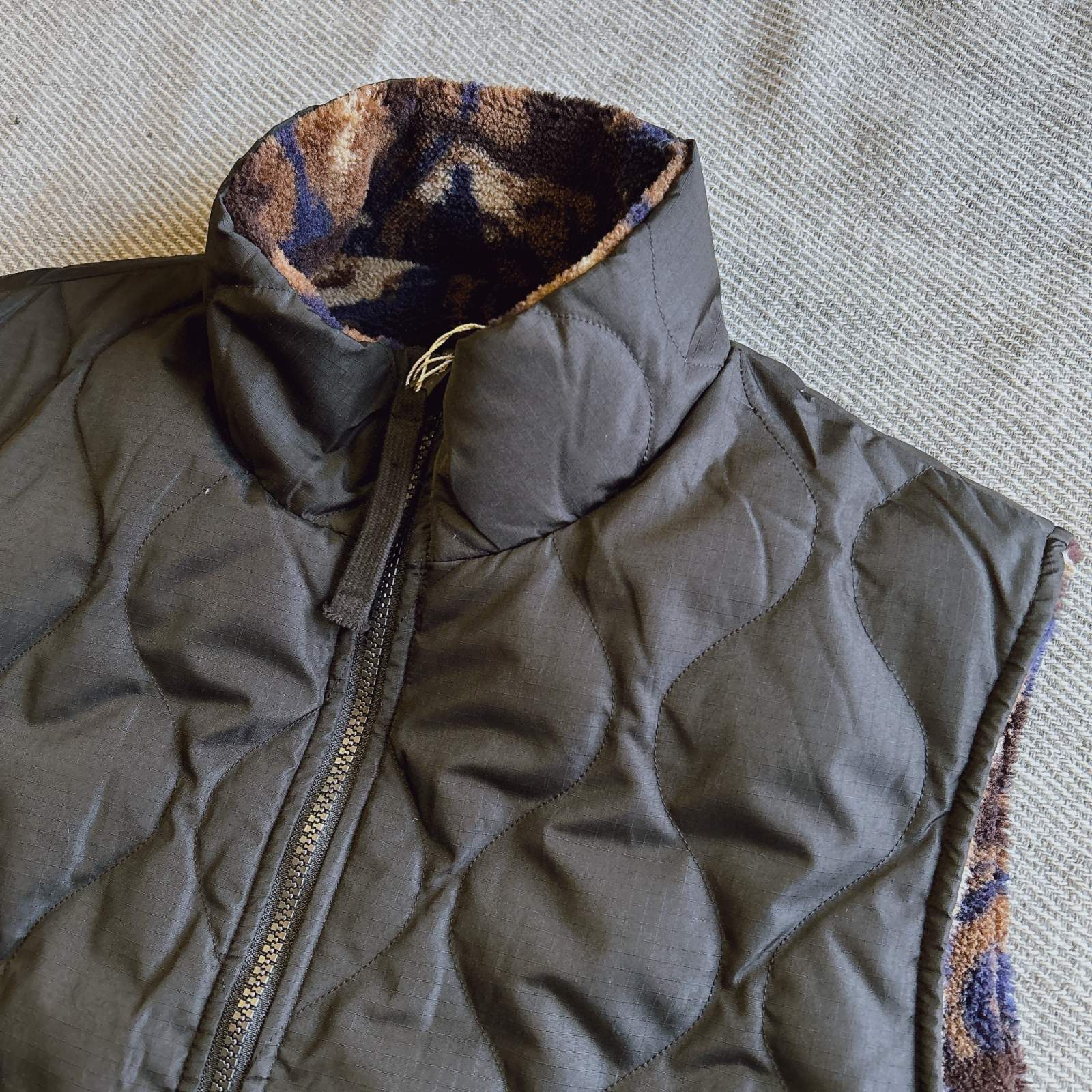 2つの表情が楽しめるリバーシブル仕様のミリタリー"ダウン×ボア"ベスト。